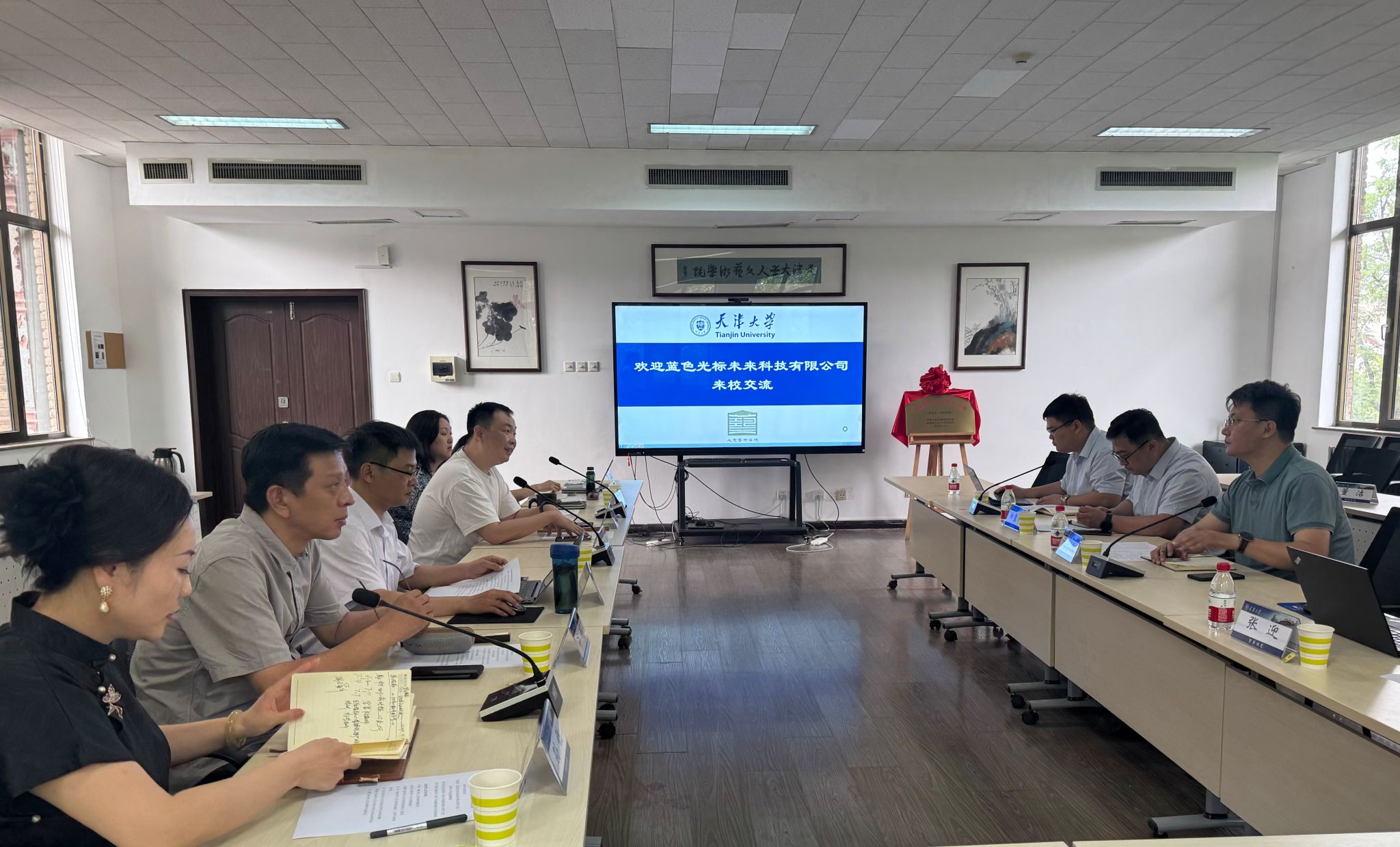 交流会上,院企双方就人工智能赋能教育教学、创意写作学科建设、实习实践基地建设等方面开展深入交流。杨维新介绍了企业基本情况,对未来双方可合作项目提出设想。他表示,创意、技术、资源是企业三大核心价值,“人工智能+教育”是未来高等教育发展的新赛道,要发挥企业自身优势和蓝色光标作为国家文化和科技融合示范基地的作用,为天津市品牌文化建设和高等教育人才培养贡献力量。