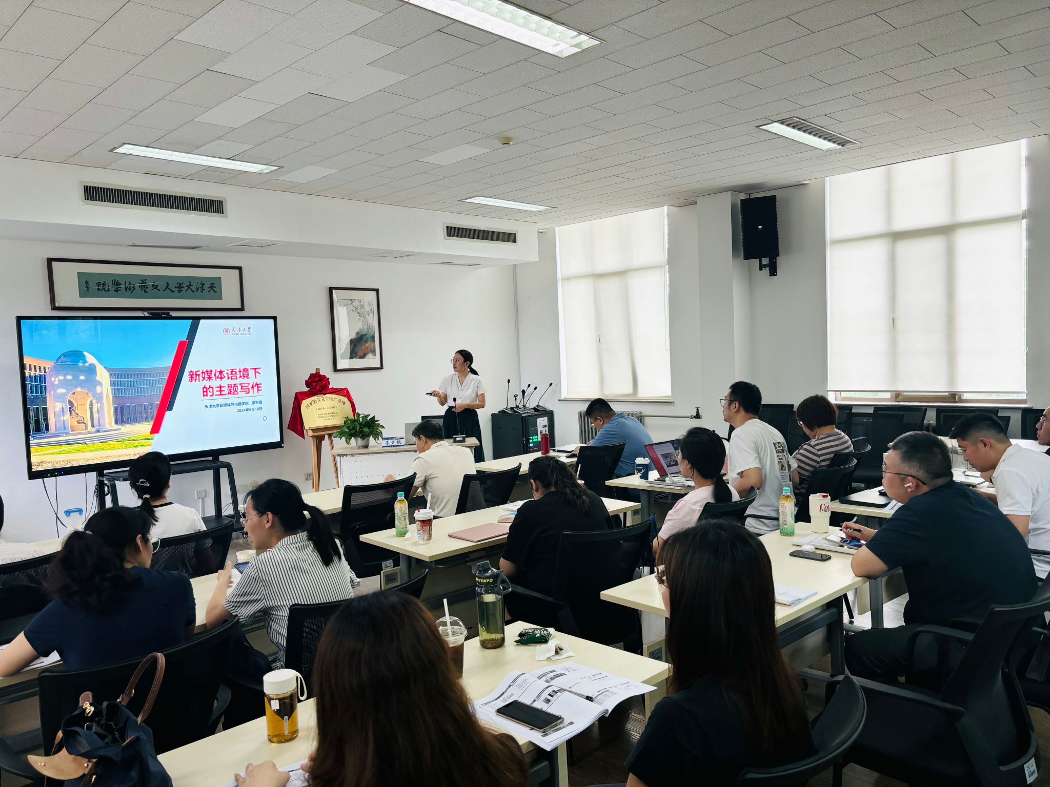 16日下午,新媒体与传播188金宝博 党委副书记、副院长李晋馥以“新媒体语境下的主题写作”为题开展培训。她带领学员了解了新媒体的发展历程,分析了新媒体环境的特点,进而讲授了如何进行新媒体语境下的主题写作。