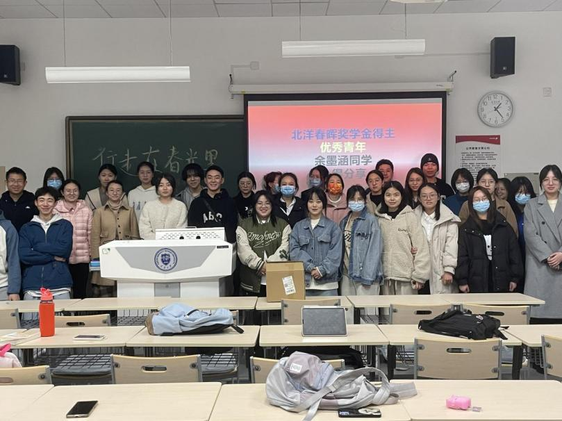 3月4日下午,2021级汉语言文学一班在33教189教室召开主题班会。本期班会主题为“学习二十大,争做新青年”。本次班会邀请到了班主任王静、北洋春晖奖学金得主余墨涵同学进行分享,兼职辅导员吴俊茹共同参会。