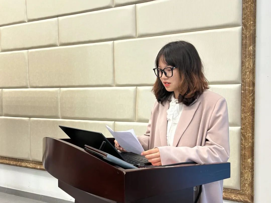 石梦雪、李俊豪、张铭艺三位同学依序进行了个人演讲。三位同学从个人简介、工作认知和未来工作计划等方面进行了阐述,展示了良好的精神面貌和青春风采。